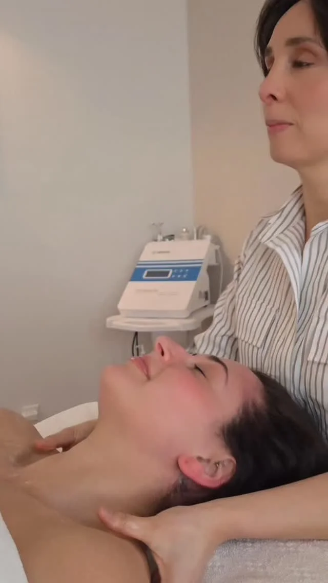 This treatment blends intraoral massage, lymphatic drainage, fascia release, and facial muscle sculpting to reach deeper structures that traditional facials cannot. It helps relieve jaw tension, reduce puffiness, improve circulation, and support healthy muscle tone while guiding the face and body out of stress mode.